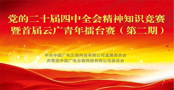 为推动党的二十届四中全会精神在企业落地生根、开花结果,引导广大党员团员青年干部将理论学习与岗位实践深度融合,切实把思想和行动统一到全会部署上来,12月9日,中国广电云南网络有限公司直属党委与团委联合举办党的二十届四中全会精神知识竞赛暨首届云广青年擂台赛(第二期)。来自公司各部门的18支队伍、36名青年选手同台竞技,以赛促学、以学促行,在脑力比拼中筑牢思想根基,在协作竞逐中凝聚奋进新征程。