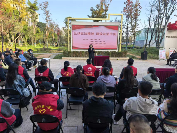 12月5日,省委省直机关工委(以下简称工委)联合昆明市西山区金碧街道弥勒寺社区,在弥勒寺公园内以“院坝宣讲”形式开展宪法宣传活动,社区居民、社区工作者、周边省直机关干部职工代表等80余人参加。