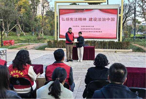 此外,工委机关普法志愿者还向西山区金碧街道弥勒寺社区赠送《习近平法治思想学习纲要(2025年版)》等法治书籍,并在活动现场设立了宣传展板,向过往群众发放法治宣传单,深入浅出地宣讲宪法知识,解答群众的法律疑问,让法治的温暖直达“最后一公里”。