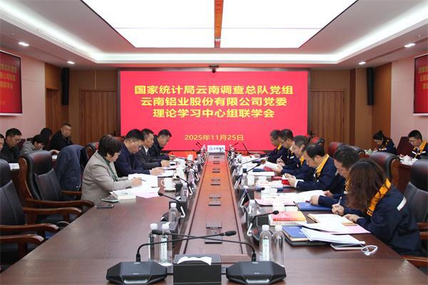 11月25日,国家统计局云南调查总队党组与云南铝业股份有限公司党委联合开展理论学习中心组集中学习。会议学习了《中共中央关于制定国民经济和社会发展第十五个五年规划的建议》相关章节、习近平总书记关于因地制宜发展新质生产力的重要论述等内容,并围绕“学习贯彻党的二十届四中全会精神,增强高质量发展动力”主题进行研讨。总队党组书记、总队长陈山俊,云南铝业股份有限公司党委书记张得教分别领学并研讨发言。