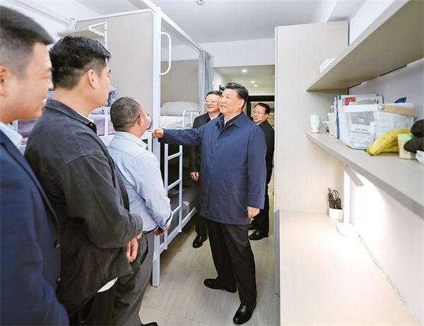 2023年11月28日至12月2日,中共中央总书记、国家主席、中央军委主席习近平在上海考察。这是11月29日下午,习近平在闵行区新时代城市建设者管理者之家考察时,在社区宿舍型出租房源租户的住房,了解在此居住的城市一线工作者的生活状况。新华社记者 鞠鹏/摄