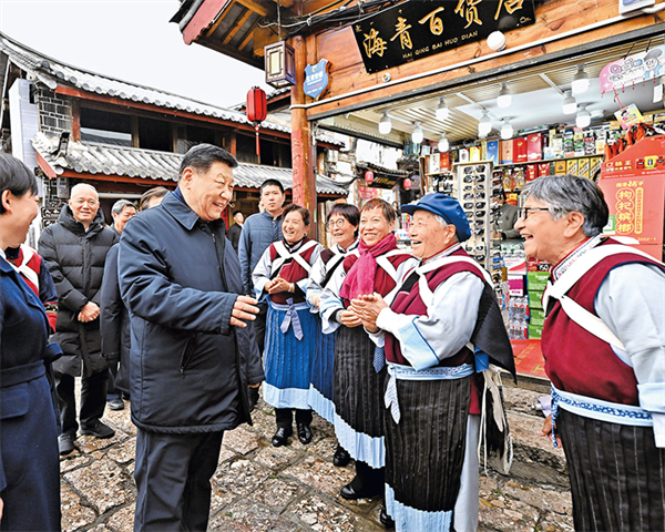 2025年3月19日至20日,中共中央总书记、国家主席、中央军委主席习近平在云南考察。这是19日下午,习近平在丽江古城考察时,与当地居民亲切交流。新华社记者 燕雁/摄