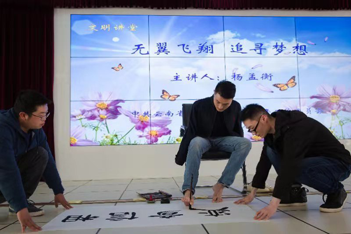杨孟衡用自己的亲身经历给在场的每名同志上了一堂生动的励志课——人生需要一种自强不息的精神,一种为理想不懈奋斗的追求,并在各种艰难困苦中坚定信念、勇于实践。越努力、越幸运;越奋斗,越幸福!