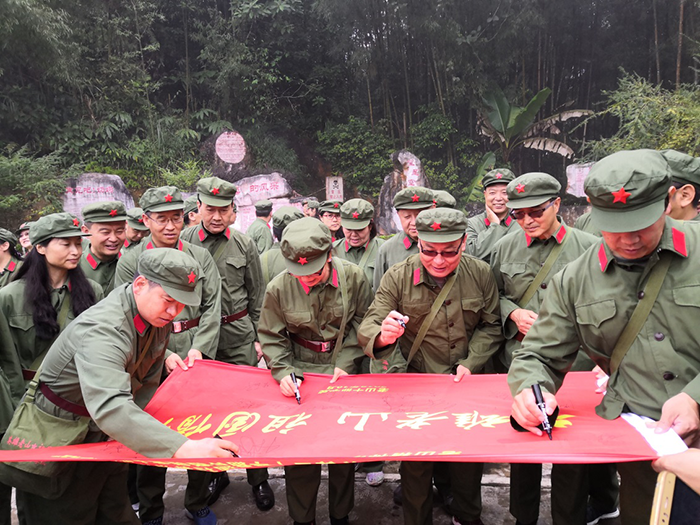 24日一早,全体学员在庄严的授旗仪式后,乘车向麻栗坡县城进发。