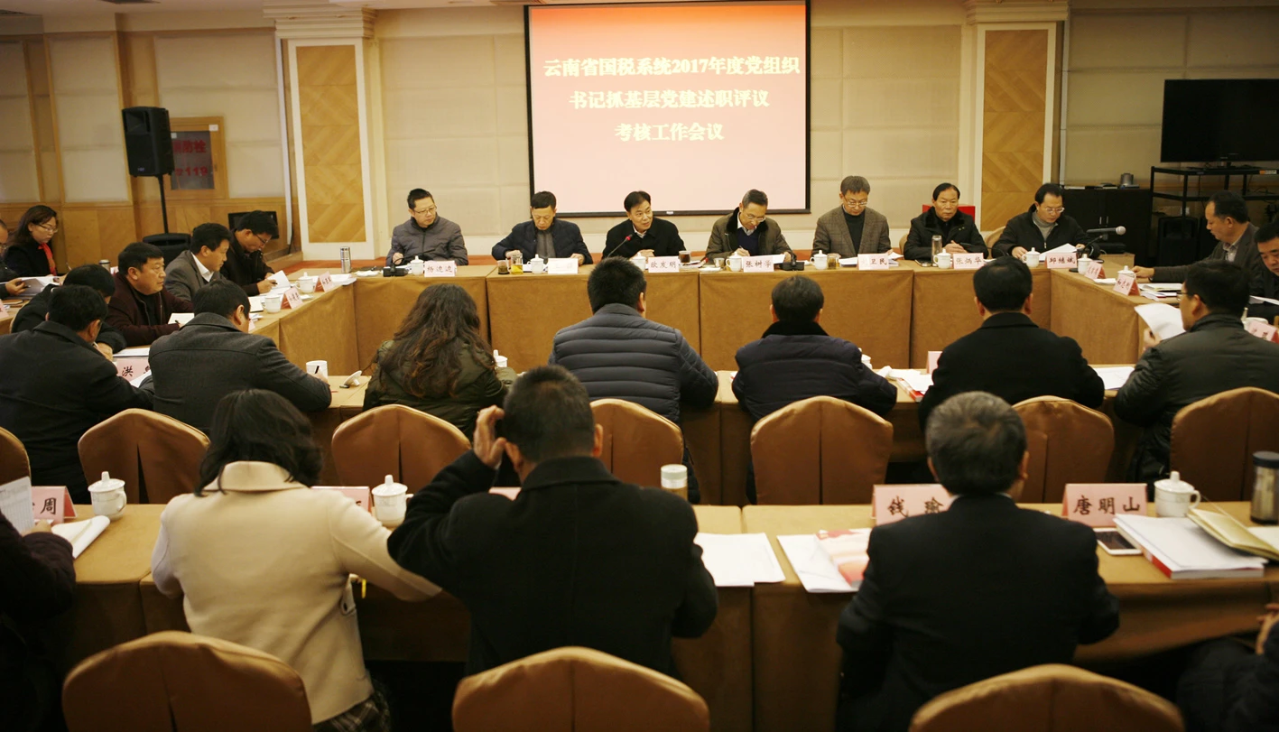 2018年1月12日,云南省国税局召开全省州(市)县国家税务局党组书记、省局机关党支部书记抓基层党建工作述职评议考核会议。省局党组书记、局长张树学出席会议,对述职对象进行点评并作总结。省局党组成员、副局长、机关党委书记欧发明主持会议。省局党组成员、副局长刘卫民,省局党组成员、副局长王镶,省局党组成员、副局长张炳华,省局党组成员、总会计师杨边边,省局党组成员、总经济师邱继斌出席会议。16名州(市)局党组书记、4名县(区)局党组书记和24个省局机关党支部书记及“两代表一委员”、部分党员、群众代表共58人参加了会议。