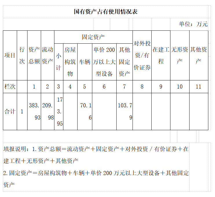 二、国有资产占用情况