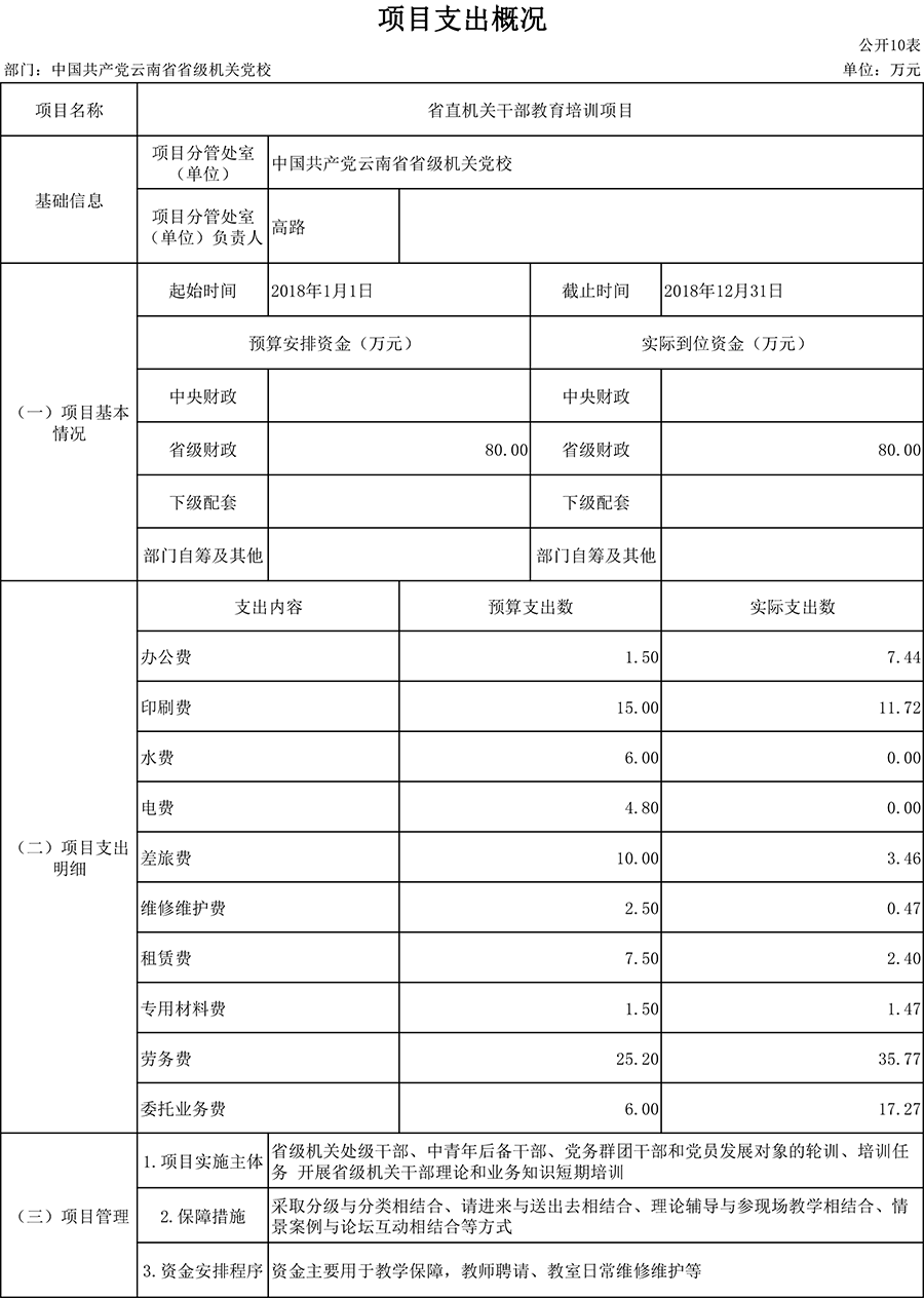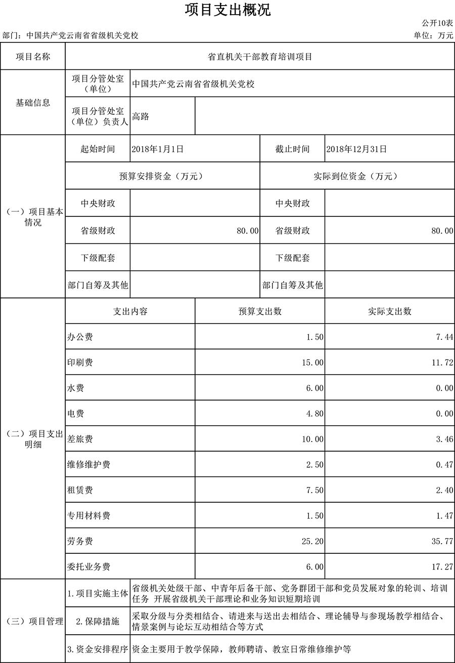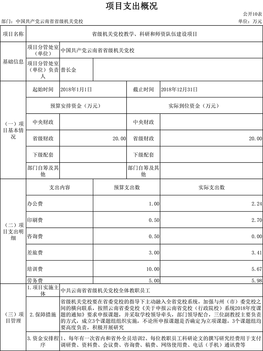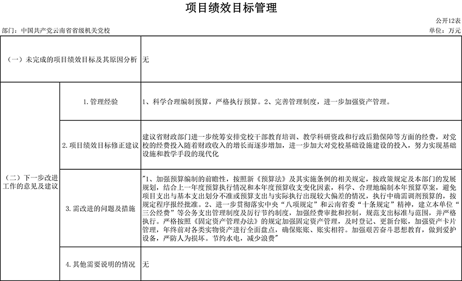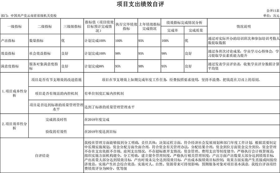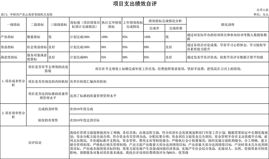 附件:中共云南省省级机关党校项目绩效自评