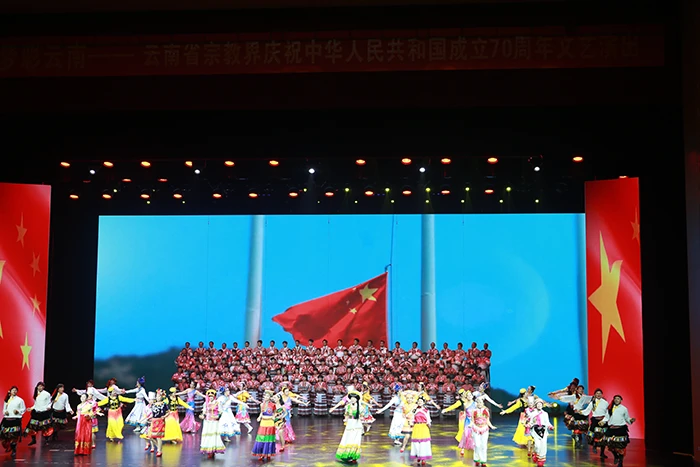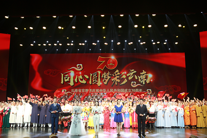 10月9日晚,由云南省民族宗教委主办的“同心圆梦彩云南—云南省宗教界庆祝中华人民共和国成立70周年文艺演出”在云南省大剧院举行。