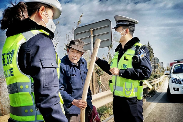 王博地、周楠执劝导行人离开高速公路
