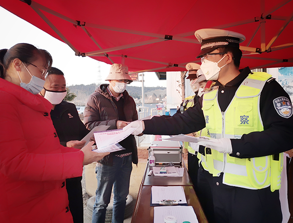疫情防控点发放宣传资料