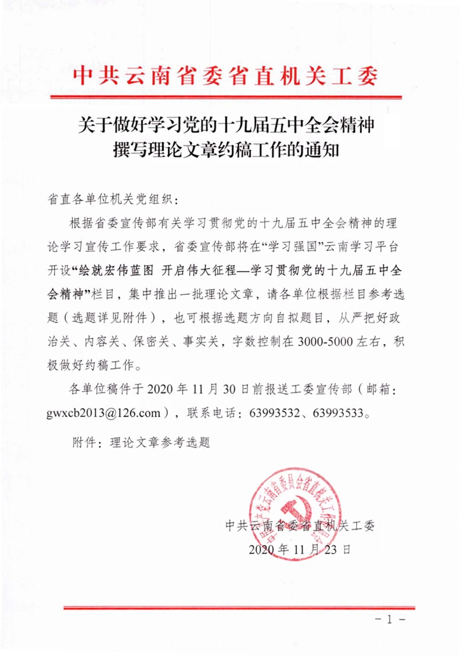 关于做好学习党的十九届五中全会精神撰写理论文章约稿工作的通知