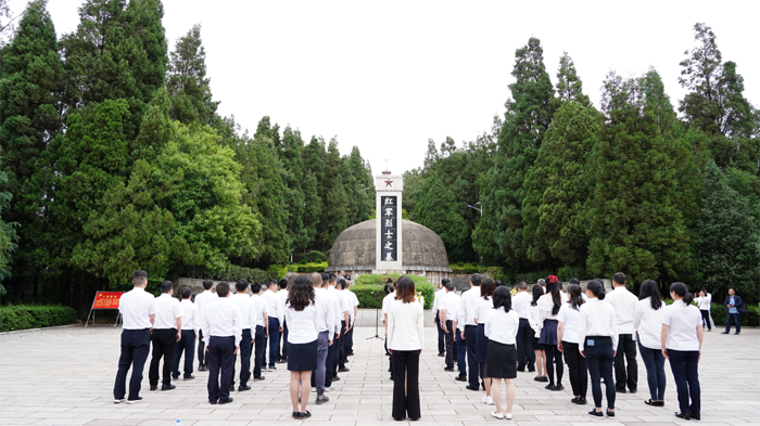 国歌唱毕,全场肃立,党员们向在红军长征中英勇牺牲的烈士默哀,向烈士敬献花篮、行三鞠躬礼,随后,党员干部职工在庄严的党旗下,重温入党誓词、瞻仰烈士陵墓、参观红军烈士纪念馆,聆听红军长征故事,学习革命先烈崇高的精神和优良的传统,坚定理想信念,凝聚奋进力量。