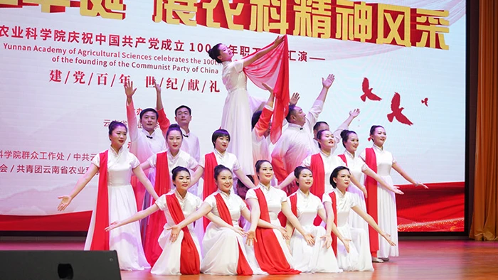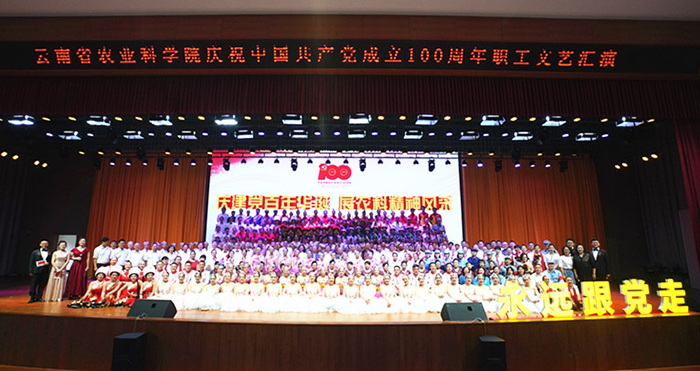 百年征程波澜壮阔,百年初心历久弥坚。为隆重庆祝中国共产党成立100周年,充分展示新时代农业科技工作者的风采,唱响共产党好、社会主义好、改革开放好、伟大祖国好、各族人民好的时代主旋律,6月24日下午,云南省农科院在多功能报告厅举行庆祝中国共产党成立100周年职工文艺汇演。院在家院领导、部分院级老领导,云南农垦集团副总经理高绍周,省直机关工委、省教卫科工会、省直机关团工委、昆明市科技局、昆明市农业农村局、云天化股份有限公司、云南省工业大麻产业投资有限公司、盘龙区和龙泉街道办及上坝社区等有关部门负责人,以及省农科院部分职工代表共500余人观看了文艺汇演。