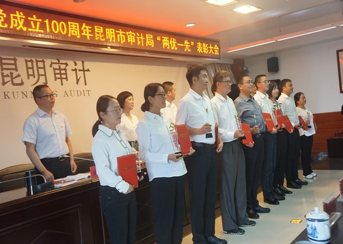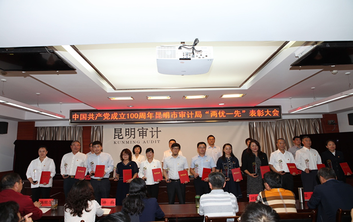 在中国共产党成立100周年之际,6月30日上午,为发挥先进典型的示范引领作用,展示“不忘初心、牢记使命”党史学习教育成果,激励全局各级党组织和广大党员继续奋勇前行、担当作为,昆明市审计局举行“两优一先”表彰大会,对优秀共产党员、优秀党务工作者、先进基层党组织进行表彰。