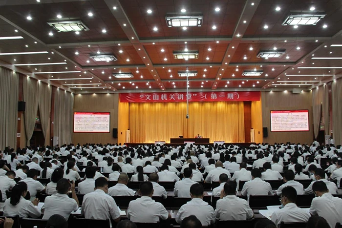 首期“文山机关讲堂”邀请省委党校二级教授欧黎明作《全面建成社会主义现代化强国的宣言书和行动纲领》专题辅导,深入解读习近平总书记在庆祝中国共产党成立100周年大会上的重要讲话精神。欧黎明教授从“中国产生了共产党,这是开天辟地的大事变”“建党一百年的历史进程”“总结历史经验,开辟美好未来”三个方面,深入解读了习近平总书记重要讲话的内涵实质和重大意义,为大家提供了理论上的方向性指引和实践上的操作性指导。