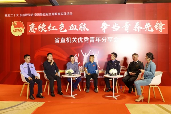 下午,充满青春气息的现场弹唱《蓝莲花》为“赓续红色血脉·争当青春先锋”省直机关优秀青年分享活动拉开序幕。