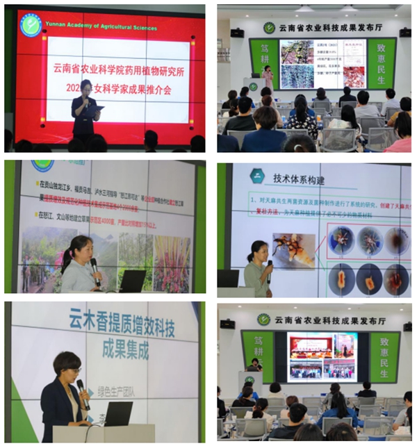 在成果推介现场,5位女性科学家分别报告并推介了“滇黄精品质提升技术研究与示范”“科技支撑草果产业发展”“基于人工俊才的天麻生态种植技术”“云木香提质增效科技成果集成”“云南药用植物提取物资源库建立及应用研究”5项应用科技成果,详细介绍了以药植女性为代表的农科人员及其创新团队开展的研究进展及科技支撑情况,充分体现了新品种、新技术、新模式、新理念在农民增收、企业增效、产业增速中发挥的重要作用,为打造世界一流“绿色食品牌”、加快推进云南农业现代化、促进云药产业发展,提供了有力的科技支撑。