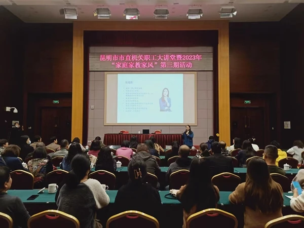 为深入学习贯彻党的二十大精神及习近平总书记关于注重家庭家教家风建设的重要论述,弘扬中华民族传统美德,引领机关干部职工建设好家庭、传承好家教、弘扬好家风,切实提高机关干部职工对家庭家教家风与代际传承的认识,近日,昆明市委市直机关工委机关工会联合会和机关妇工委邀请李海燕老师,在昆明会堂8号会议室开展机关职工大讲堂暨2023年“家庭家教家风”第三期活动,130余名机关干部职工参加了此次活动。