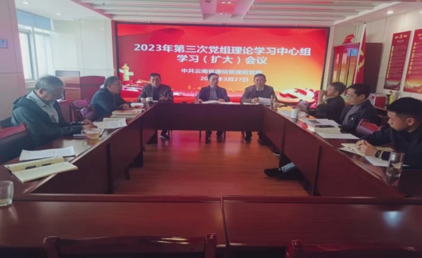 3月27日,云南省通信管理局召开2023年第三次党组理论学习中心组(扩大)会议,深入学习贯彻党的二十大精神,认真学习贯彻习近平总书记在全国两会期间的重要讲话和全国两会精神,研讨深刻把握党的二十大对全面建设社会主义现代化国家的战略部署和要求,加快建设制造强国、质量强国、网络强国、数字中国的政治自觉、思想自觉、行动自觉,努力开创云南信息通信业高质量发展的具体举措。局党组书记、局长范斌主持会议,局党组成员、巡视员、处级以上领导干部参加学习,阎继国、陈泽飞作专题发言,宋蓓、杨书忠、程胜桃作交流发言,有关处室负责人作交流研讨。