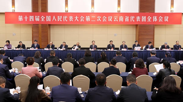 3月3日下午,出席第十四届全国人民代表大会第二次会议的云南省代表团举行全体会议。