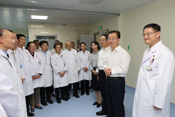 北京大学肿瘤医院云南医院是我省与北京大学合作共建的国家癌症区域医疗中心。王宁、王予波前往门诊和住院楼,与医务人员交流,了解“一站式”医疗服务、智能采血系统等情况。强调要充分发挥省校共建优势,不断提升医疗服务、科研教学、医院管理、人才培养等水平,加强先进医疗技术合作交流,高质量建好区域医疗中心,服务好全省和周边群众就医需求。