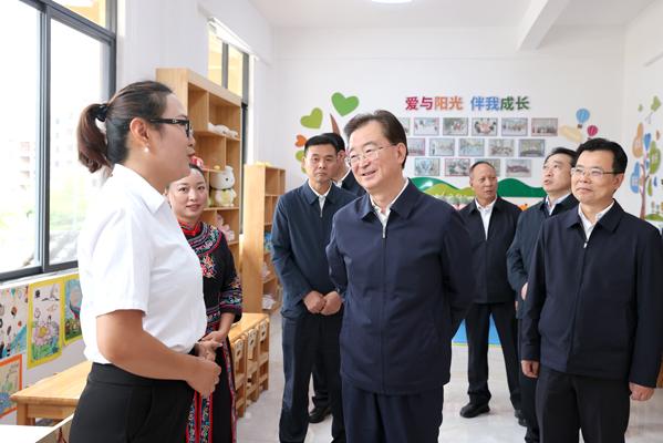 富宁县新华镇安康社区是一个易地搬迁后多民族共居的社区,王宁详细了解基层治理、关爱“一老一小”、就地就近就业等情况。他说,基层治理要以党建引领网格化管理服务,引导各族群众共建共享美好家园;要联动学校、家庭和社会力量,共同帮助留守儿童困境儿童健康成长;要鼓励支持招小商、招就业带动力强的商,为群众提供家门口就业的机会。