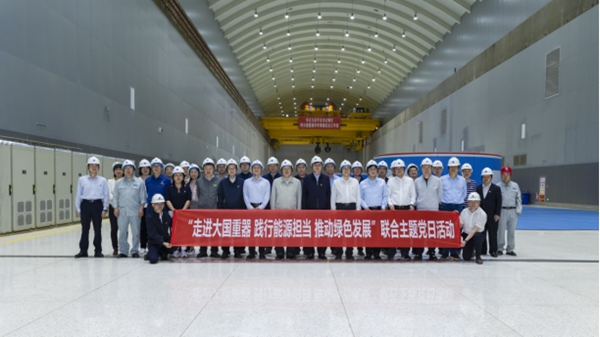 活动中,大家深入白鹤滩水电站大坝厂房,重温入党誓词,参观百万机组,体悟大国重器,集中学习习近平总书记对乌东德水电站首批机组投产发电重要指示和致白鹤滩水电站首批机组投产发电贺信精神,接受了精神洗礼,牢记了殷殷嘱托。立足主责主业,围绕能源保供、绿色发展、安全生产,与三峡云川公司及白鹤滩电厂主要负责同志及生产一线干部职工深入交流,认真听取意见建议。现场聆听了国家杰出青年科学基金获得者、大连理工大学博士生导师程春田教授“水电参与电力市场的几个关键问题及其解决途径”专题讲座,并就“双碳”背景下,如何更好发挥水电“量”的绿色价值和“力”的灵活性价值进行交流研讨。活动内容丰富、形式多样,深刻领悟“国之大者”,激发使命担当,推动绿色发展。