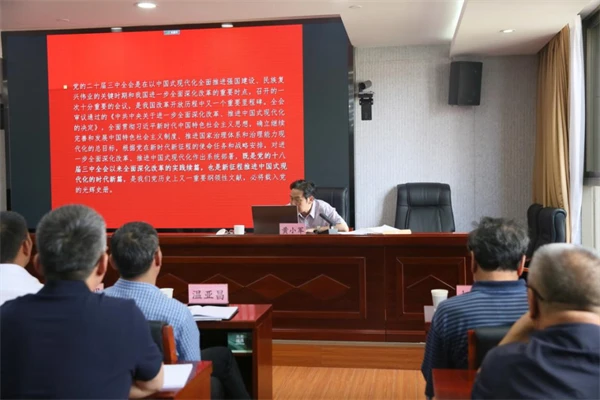 为深入学习宣传贯彻党的二十届三中全会精神,按照党中央统一部署、省委有关安排,8月29日,云南省搬迁安置办公室开展学习贯彻党的二十届三中全会精神集中宣讲,邀请省委宣讲团成员、省社会科学院黄小军研究员到办机关进行集中宣讲辅导,省搬迁安置办党组班子成员、二级巡视员,办机关、技术服务中心党员、干部参加。