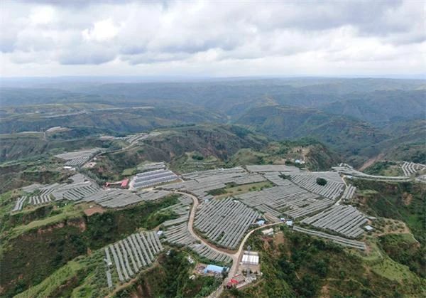 这是2021年9月8日在甘肃省天水市拍摄的引洮供水工程杨家湾调蓄水池(无人机照片)。新华社记者 范培珅 摄