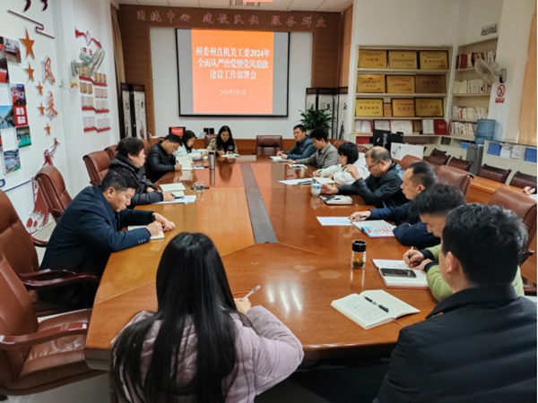 3月1日,文山州委州直机关工委召开2024年全面从严治党暨党风廉政建设工作部署会,深入学习贯彻习近平总书记关于党的自我革命的重要思想,全面贯彻落实中央和省、州纪委全会精神。会议组织观看了警示教育片,总结州委州直机关工委2023年全面从严治党和党风廉政建设工作,部署2024年工作任务。常务副书记杨恩丽主持会议并作讲话,全体干部职工参加会议。