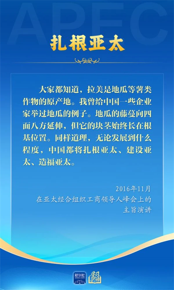党的十八大以来,习近平主席出席或主持历次APEC会议并发表重要讲话,就推动亚太合作作出生动阐释,为亚太地区发展贡献中国智慧。
