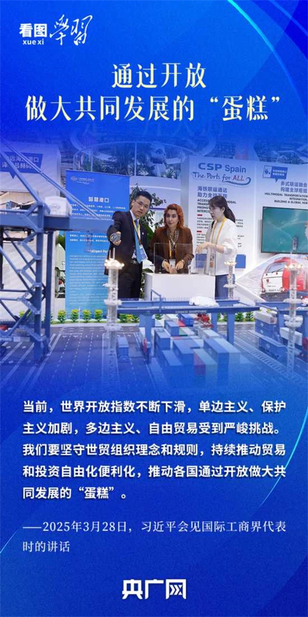 从推动国际经贸“打通血脉”到呼吁各国“通过开放做大共同发展的‘蛋糕’”,从倡导勇于“拆墙”到以“大海”为喻阐释中国经济……在宣示中国坚定不移推进高水平对外开放的主旨讲话中,习近平主席多次引用了生动形象的比喻,蕴含深远寓意,彰显大国责任、决心和行动力。