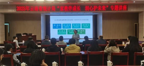 结合2025年全国家庭教育宣传周、全国家风家教宣传月和省妇联、省直机关妇工委工作安排,5月15日上午,云南省统计局机关妇委会举办“家教伴成长 润心护未来”专题讲座。