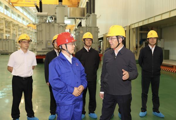 7月1日,王予波在云南变压器电气股份有限公司与企业负责人交流。