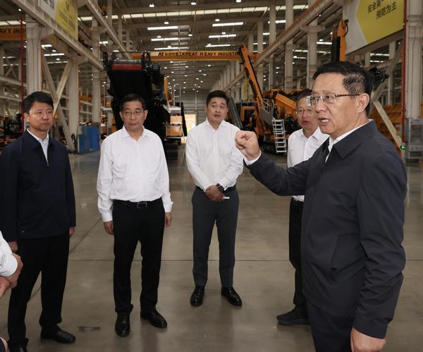 8月20日,王予波在龙马机械装备公司建设现场听取企业家意见建议。