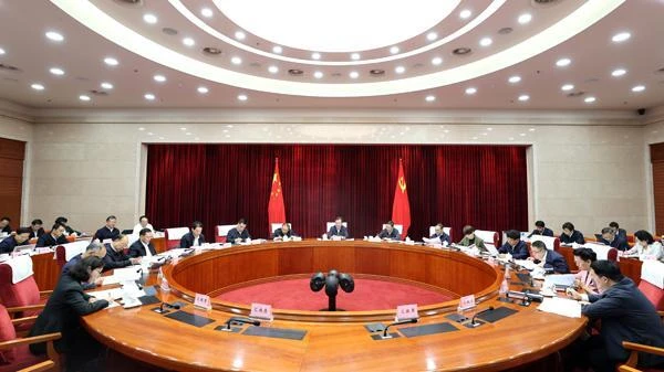 会议指出,习近平总书记率中央代表团到新疆出席新疆维吾尔自治区成立70周年庆祝活动,在党和国家历史上是第一次,充分体现了党中央对新疆工作的高度重视、对新疆各族干部群众的亲切关怀。我们要认真学习习近平总书记在听取新疆维吾尔自治区党委和政府工作汇报时的重要讲话精神,加强党的领导和党的建设,铸牢中华民族共同体意识、推进中华民族共同体建设,扎实推动高质量发展,做强做优做大特色优势产业,大力发展社会事业,让各族群众广泛参与发展进程、共享发展成果。要深入学习领会习近平总书记近期重要指示、重要贺信精神,结合实际抓好贯彻落实。