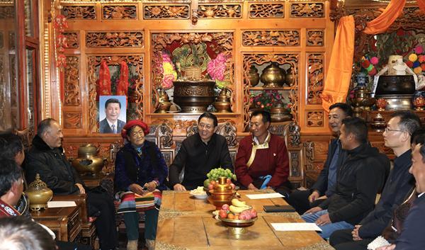 王予波到德钦县雨崩村阿那主家里,向基层干部群众宣讲党的二十届四中全会精神。