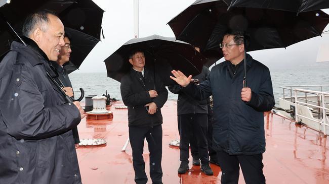 王予波冒雨来到抚仙湖明星片区,履行湖长职责开展巡湖,到杞麓湖南岸龙潭沟调研水质脱劣攻坚情况,在星云湖北岸湿地察看蓝藻处理设施。他指出,要有坚定意志,切实巩固拓展“三湖”保护治理成效。要有认真精神,把“三治一改善”要求落实到每个环节。要有管用措施,把水利建设、水价改革与设施农业发展结合起来,综合防治面源污染,抓好入湖河道治理。要有科学方法,优化水质监测和综合评价体系,精准把脉、精准施策、精准治理。