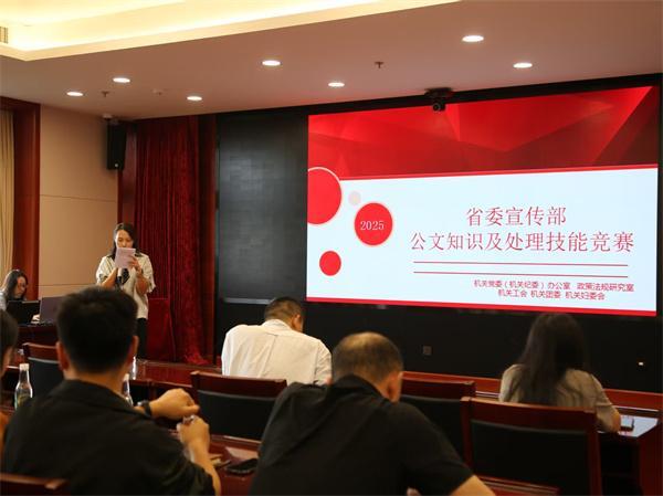 为进一步提升省委宣传部机关干部职工公文写作与处理的规范化水平,强化以文辅政能力,6月26日,省委宣传部组织举办2025年度公文知识及处理技能竞赛,并同步开展文稿写作培训,部机关各处室、直属单位的选手及观众共计50余人参加活动。