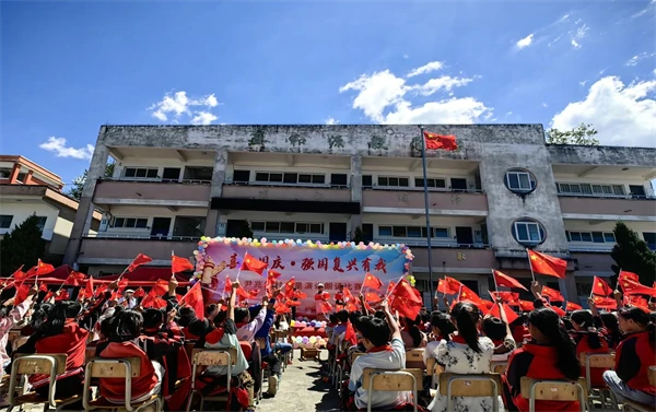在龙陵县尹兆场小学,小选手们踊跃登台朗诵自创的诗歌作品-——《历史的回响与时代的宣言》《小小爱国者,大大中国梦》《国庆礼赞》,一篇篇诗词或奔放豪迈,或多情温婉,斗志昂扬,“少年强则国强,少年进步则国进步”“曾经,您经历磨难、饱受沧桑,但英雄的中华儿女从未放弃希望,用热血和生命谱写壮丽的篇章”“作为新时代的少先队员,我们要有小小的爱国心,更要有大大的中国梦”……新时代好少年以稚嫩嗓音传递爱国情怀,用昂扬姿态献礼祖国华诞。台下孩子们激情澎湃地展臂挥舞着五星红旗,清澈嘹亮的童声回荡山间,倾情讴歌党的恩情、对祖国的热爱和对未来的祝愿,铮铮誓言流露出真情实感,铿锵有力展现出青春风采,赢得全场阵阵掌声。经过紧张角逐,全校56名参赛选手中18名同学和6名辅导老师表现突出荣获嘉奖。
