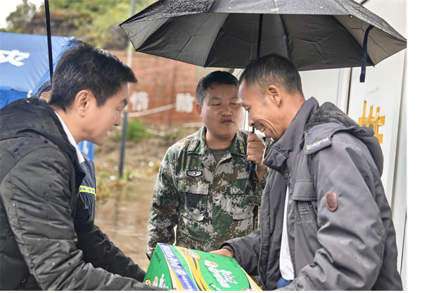 组织一次走访慰问。10月7日,由局党组书记、局长带队,深入受灾群众家中,详细查看房屋受损、物资储备情况,为他们送上方便面、干粮等应急生活物资。同时,注重对转移安置群众和受灾农户进行情绪安抚和心理疏导,传达党委、政府的关怀,鼓励大家树立信心,共渡难关。“多亏了党和政府的关心,这么大的雨还来看我们,心里特别踏实!”拿到物资的村民连连感谢。