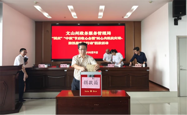 捐赠一笔救灾资金。10月9日,州政务服务局及时开展“同心共筑抗灾墙、防汛救灾在行动”捐赠活动,号召全体干部职工为受灾群众捐款,凝聚起防汛救灾的强大力量。