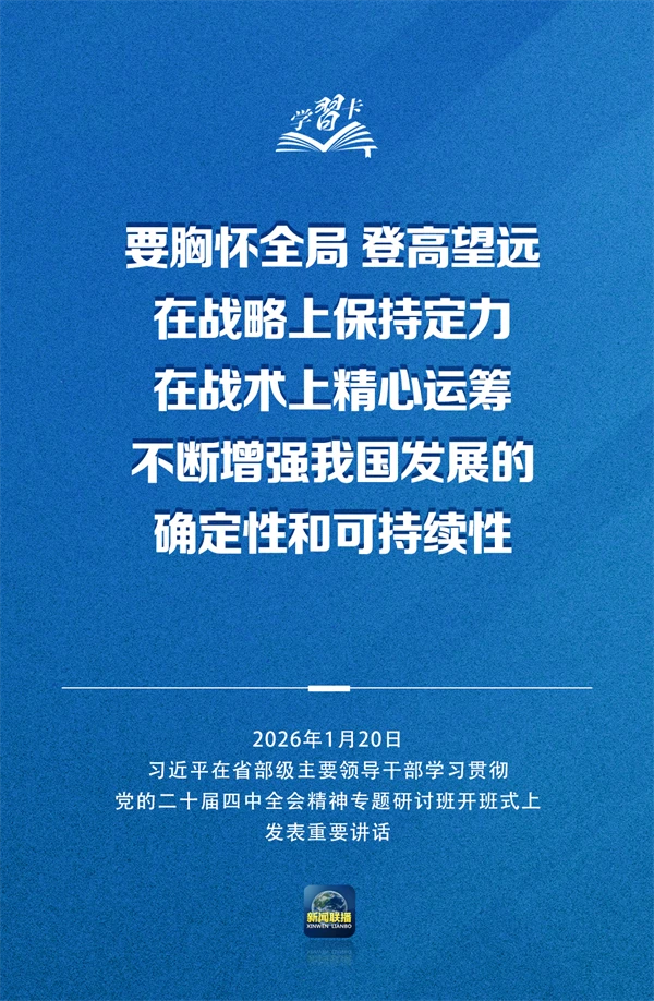 省部级主要领导干部学习贯彻党的二十届四中全会精神专题研讨班20日上午在中央党校(国家行政学院)开班。中共中央总书记、国家主席、中央军委主席习近平在开班式上发表重要讲话强调,要把学习贯彻党的二十届四中全会精神不断引向深入,更好统一思想、凝心聚力,在党中央坚强领导下扎实做好各项工作,努力实现“十五五”良好开局。
