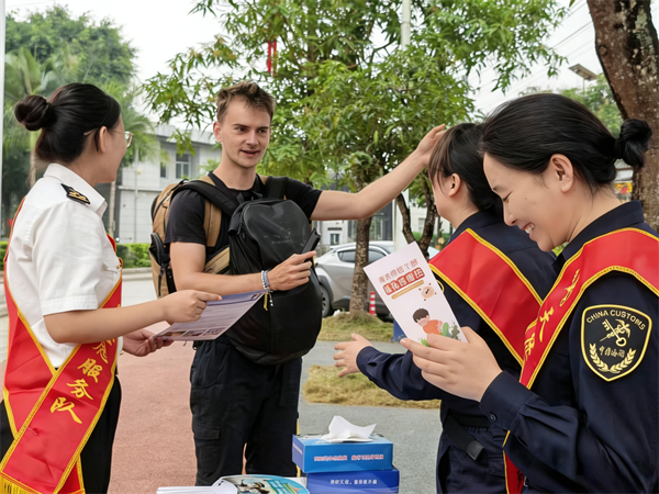 昆明海关所属天保海关团支部开展“饮水思源 致富思进”宣传教育暨“爱边疆·志愿行”国门志愿服务活动,组织青年志愿者队伍深入天保镇国门广场,将雷锋精神的时代内涵融入国门履职实践。志愿者立足海关职能,聚焦国门生物安全、出入境行李物品携带、跨境贸易便利化等群众关切的重点领域,通过设立咨询台、发放宣传手册、现场答疑解惑等形式,用通俗易懂的语言解读海关法律法规,用耐心细致的服务回应群众诉求,让国门安全理念深入人心。