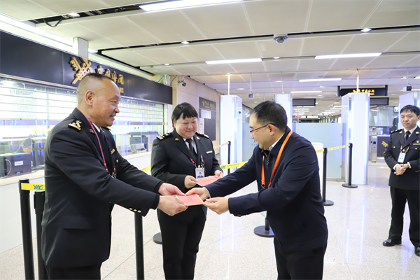 在昆明长水国际机场海关,慰问组深入机场口岸执勤点、业务办理窗口,详细询问工作情况,对他们无私奉献坚守国门一线、纪律严明保障通关顺畅的辛勤付出,表示衷心感谢并致以节日祝福。