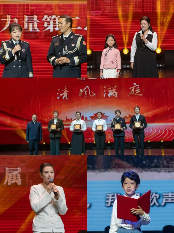 《清风满庭》篇章传递家风力量。活动现场为省直机关5户获评2025年度“云南省最美家庭”进行颁奖。国家移民管理局常备力量第二总队张阳与吉灵(最美家庭代表)、省人力资源社会保障厅郑曦媛(书香家庭代表)、省政府办公厅丁明勇家属王娇(清廉家庭代表)分享了各自的家风故事。一句句朴实的语言,一个个真实的故事,让在场观众无不动容,掌声不断。省公安厅选送的诗朗诵《星星住进我眼睛》,以童真视角展现家风传承、童心向党的美好画面。