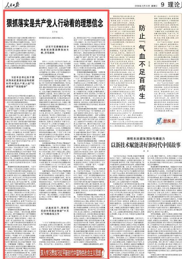 2月25日,《人民日报》理论版刊登了云南省委副书记、省长王予波文章《狠抓落实是共产党人行动着的理想信念》。