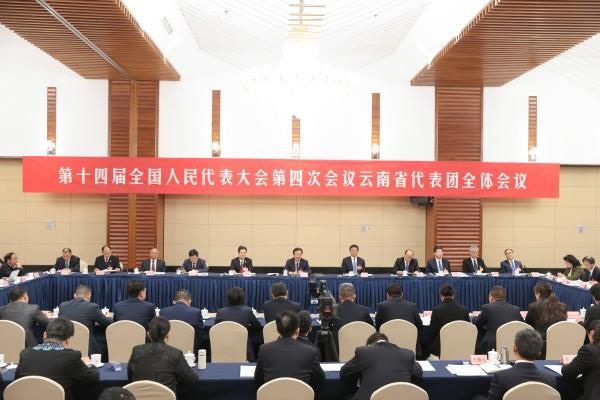 3月11日上午,出席十四届全国人大四次会议的云南省代表团举行全体会议。