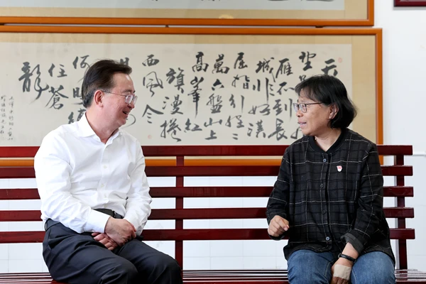 3月30日,王宁来到华坪女子高中,看望张桂梅老师,调研办学治校情况。