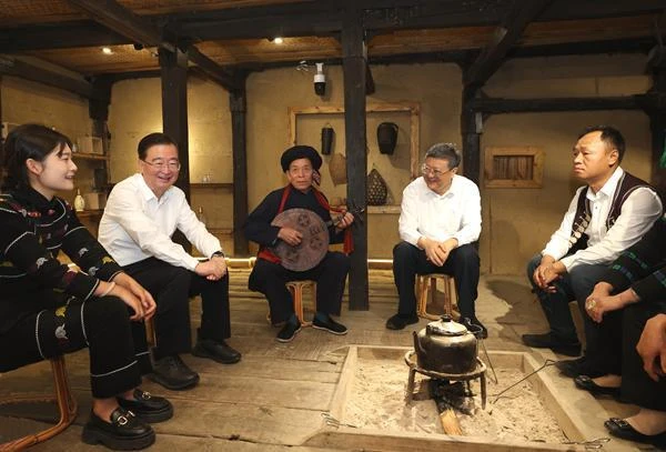 4月17日,上海市代表团在元阳县阿者科村了解村民生产生活、旅游促增收及哈尼古歌传承等情况。